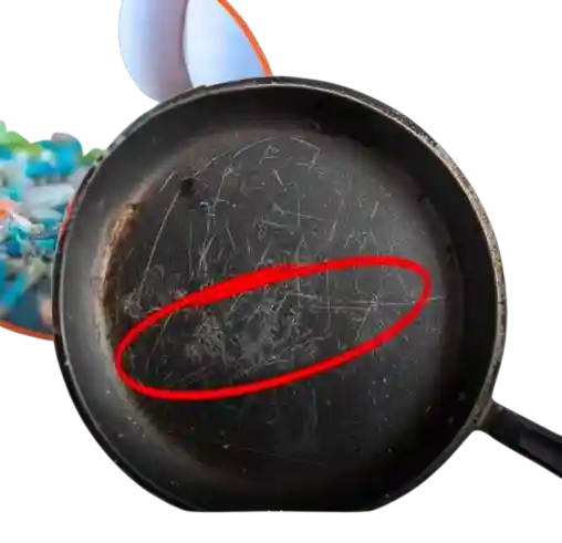 When the coating gets scratched, it will be dangerous for you. These scratches can flake off into your food (not great to eat) and also degrade the pan’s non-stick properties, making you more likely to overheat it next time.