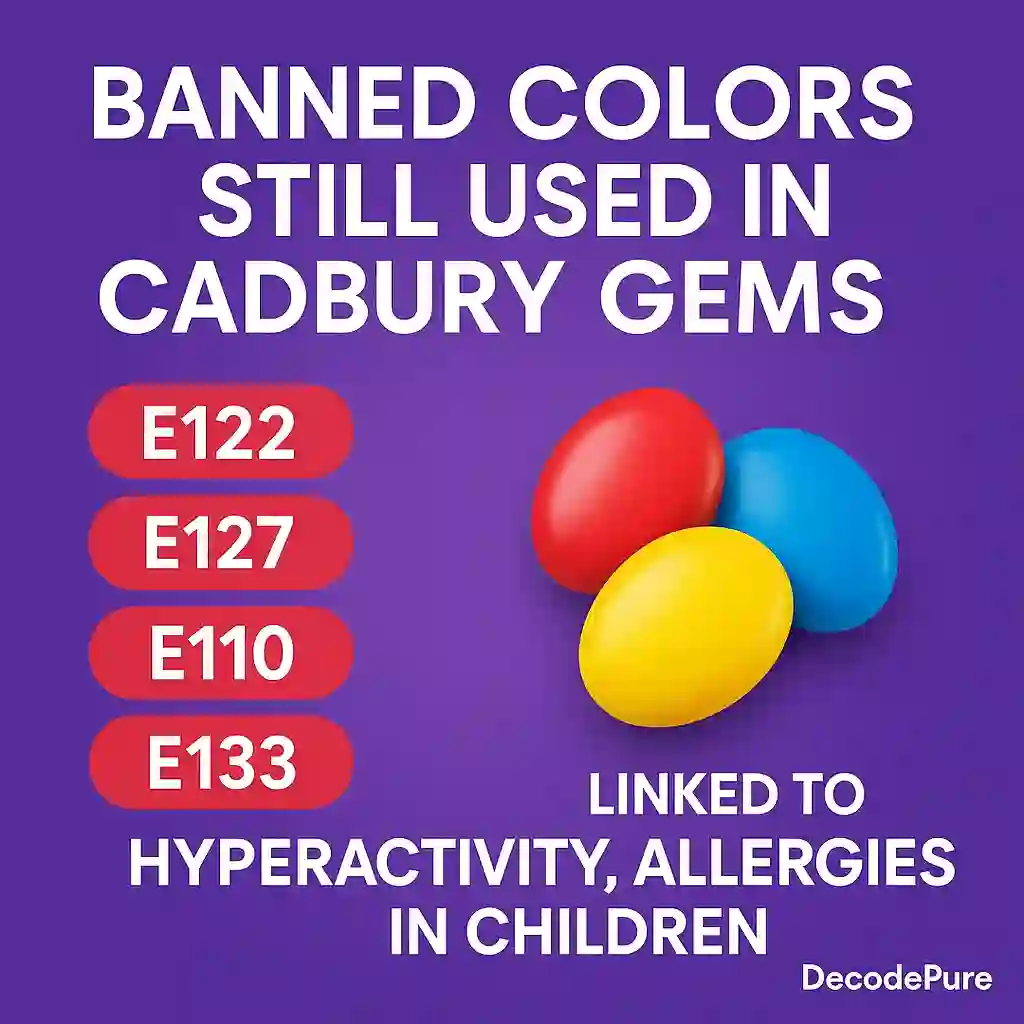 If you’re a parent in India, you’ve definitely seen kids going crazy for those purple packets of Cadbury Gems; they’re everywhere, like in lunchboxes, at birthday party return gifts, etc. One day, a kid next to me was eating Cadbury. I took the packet from him. But as a chemistry student, I don’t just eat; I read labels. And when I looked closely at the back of a Gems packet recently, what I found was less “magic” and more chemistry lab.