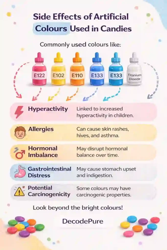 This is the most critical part of my analysis. The beautiful colors of Gems are not natural. They are a cocktail of synthetic azo dyes and inorganic pigments. Eight different artificial colors are used to create those attractive shells.